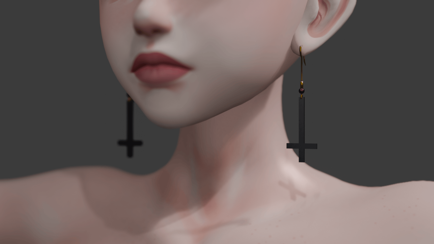 Rigged and textured earring! Place where you need and then mirror the mesh and armature to the other side.